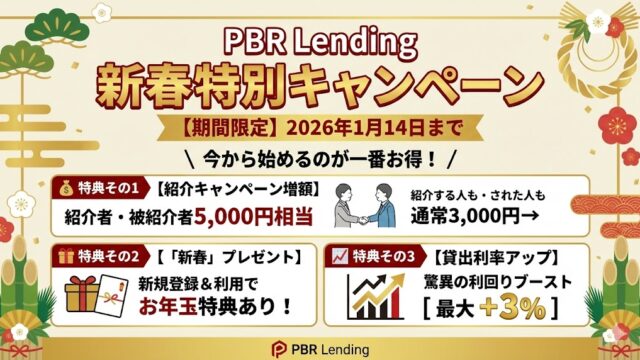 【1/14まで】PBRレンディング新春キャンペーン!紹介5,000円&利率最大+3%UPの特大チャンス